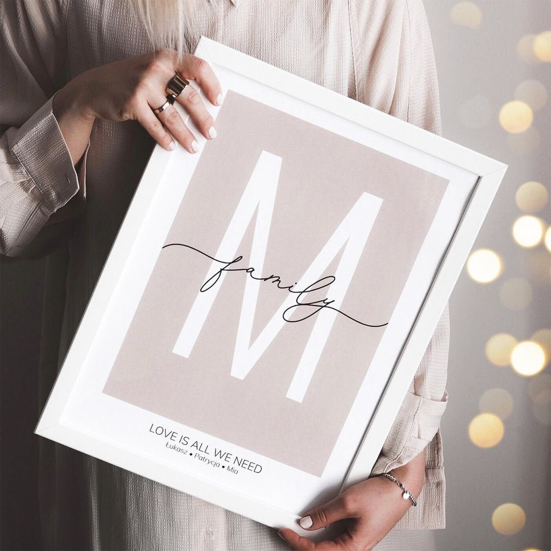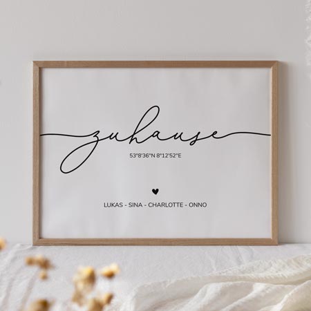 Gestalte jetzt dein personalisiertes Familienposter selbst! Das Poster lässt sich ganz einfach mit den Namen all deiner Familienmitglieder und einer passenden Widmung personalisieren. Zudem hast du die Auswahl zwischen sechs verschiedenen Farben. Das Poster ist eine einzigartige Geschenkidee zum Einzug, zur Geburtstag uvm. Durch die Personalisierung zauberst du ganz einfach mehr Persönlichkeit in die eigenen Vier Wände und macht sie somit zu deinem wohlfühl Zuhause!