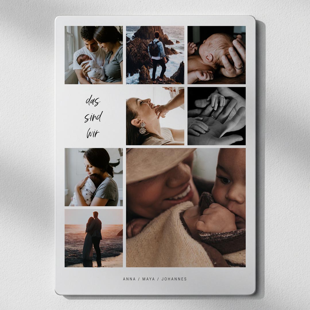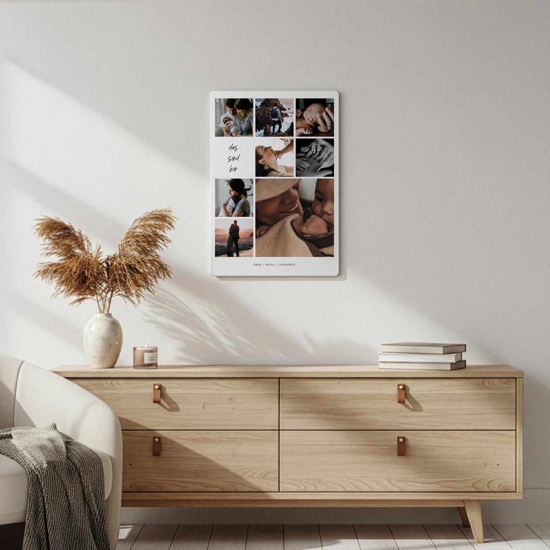 Mach dein Zuhause noch besonderer - mit dem edlen Metallposter Collage Family No1. Gedruckt auf einer hochwertigen, beschichteten ChromaLuxe-Aluplatte verwandelt es jedes Motiv in ein brillantes Kunstwerk. Der aufwendige Sublimationsdruck sorgt für gestochen scharfe Farben, extreme Haltbarkeit und eine beeindruckende High-Definition-Wirkung. Durch die ultradünne 1,1-mm-Metallplatte und die rückseitigen Aluminiumschienen schwebt dein Bild elegant an der Wand.